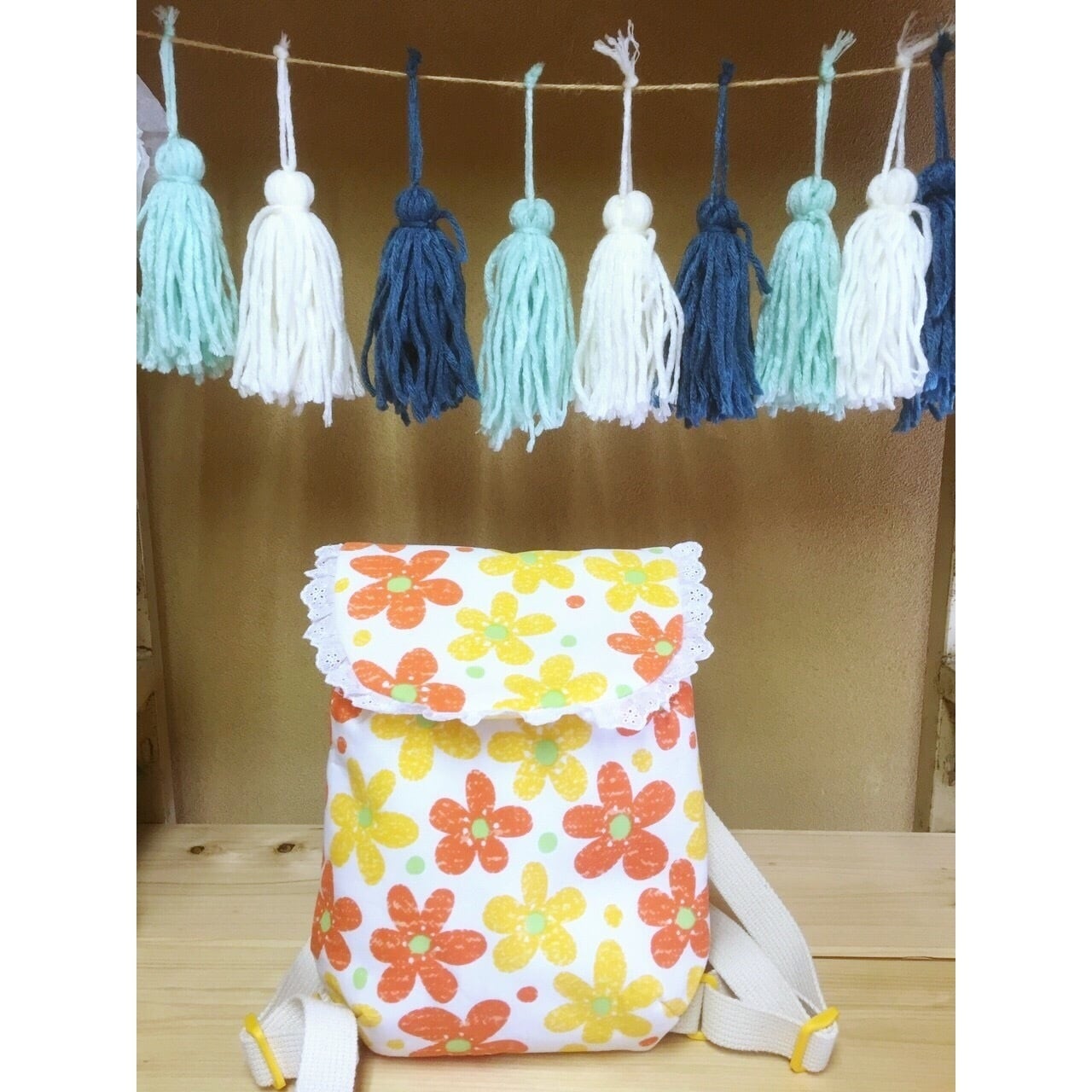ベビーリュック オレンジ花柄 -orangeOHANA-