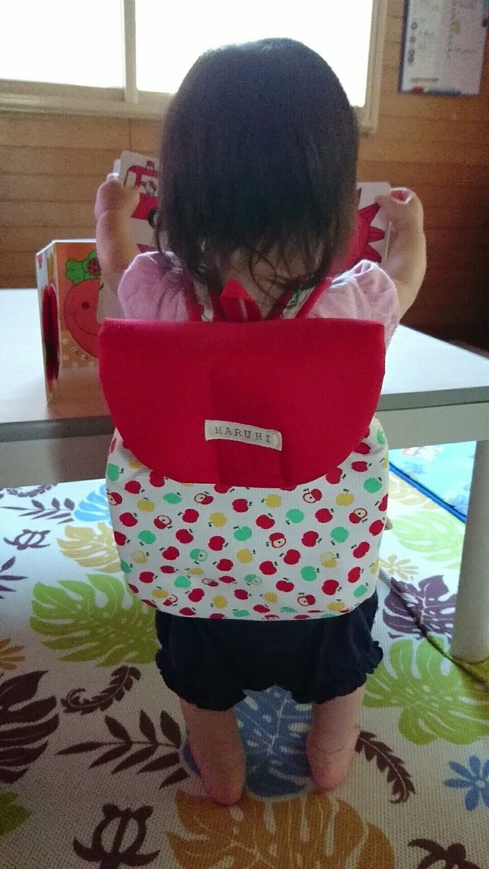 カラフルなリンゴ柄が可愛いベビーリュックです。